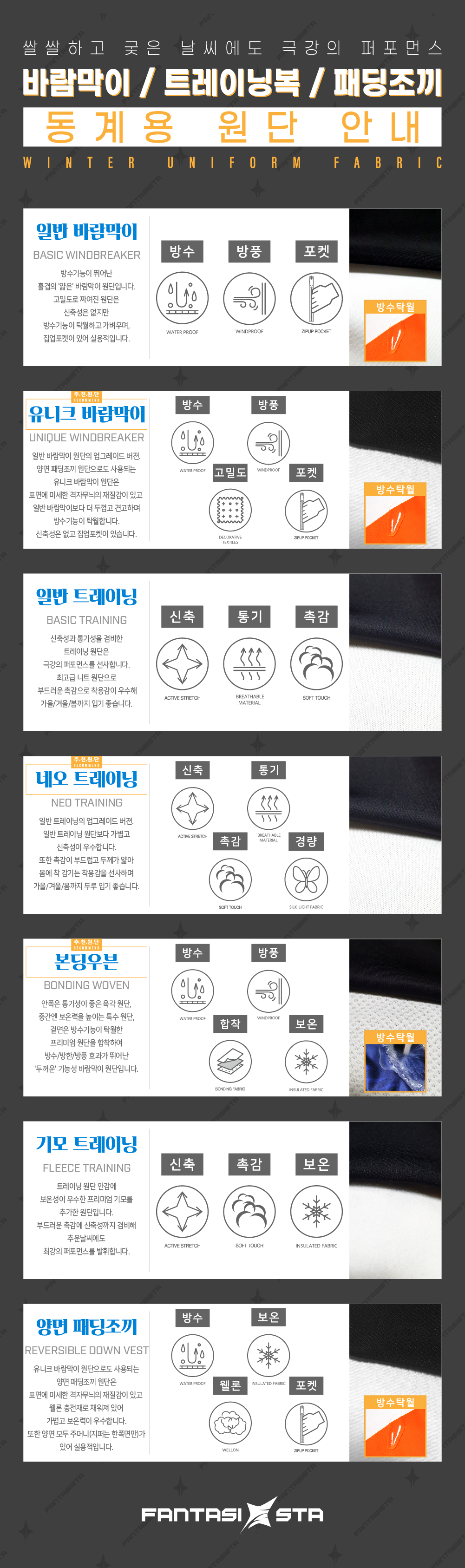 일반 트레이닝 신축성/통기성을 겸비하여 뛰어난 활동감 | 52,000 기모추가 +6,000 | 55,000 기모추가 +6,000 | 62,000 기모추가 +6,000 |